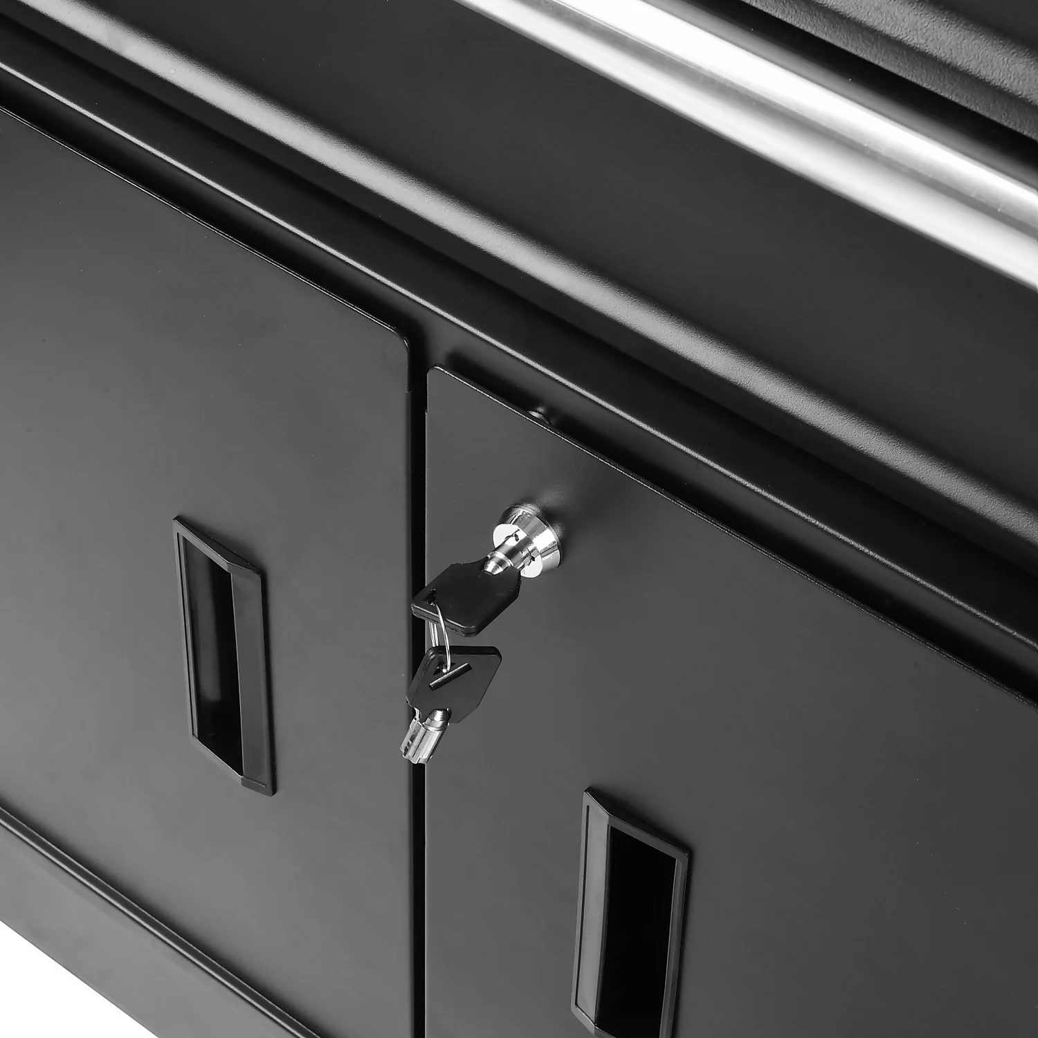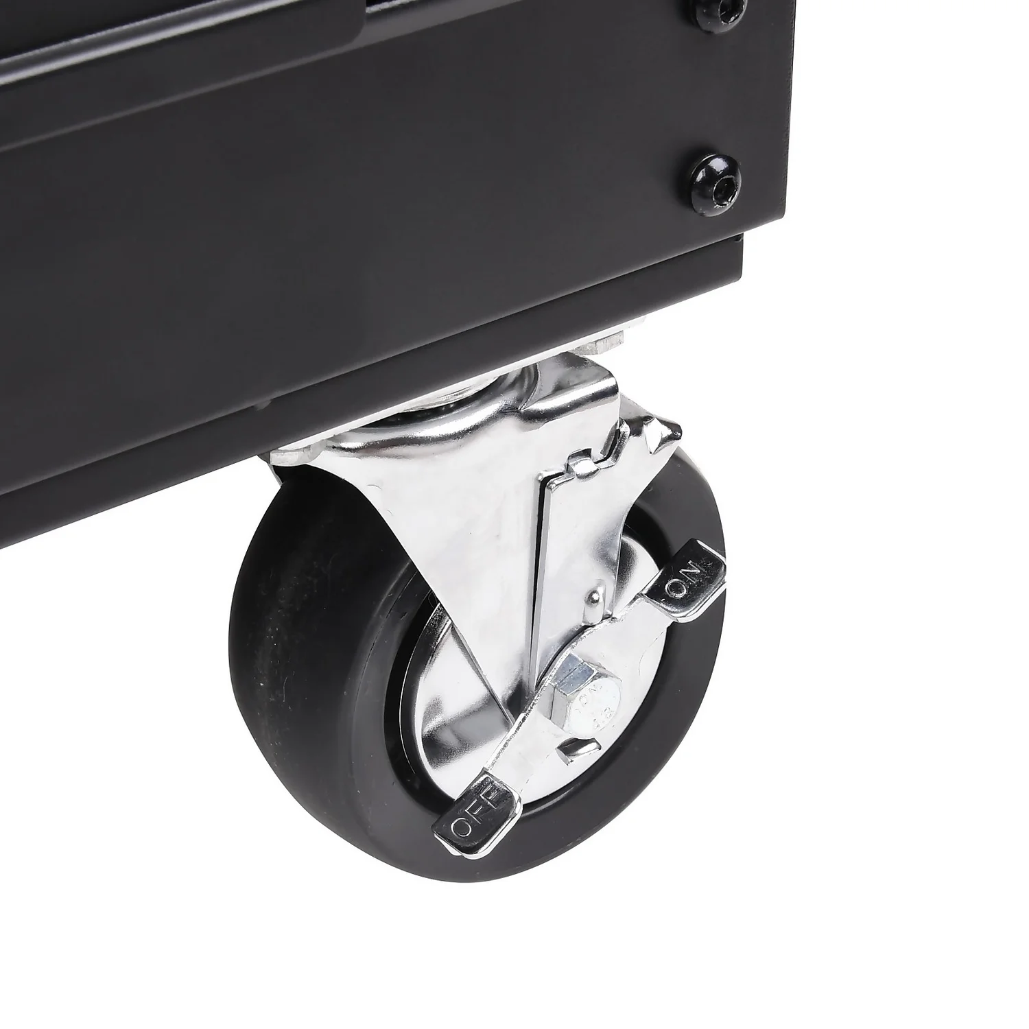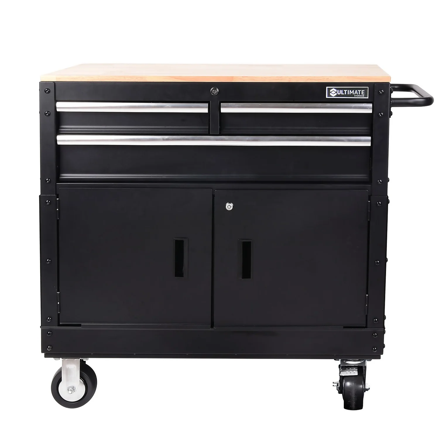 This Ultimate Tool Trolley is a necessity in the tool shed and workplace. With a handy drawer and cupboard combination, this trolley provides ample space to organise and store tools. A stylish alternative in tool storage, this tool trolley is modern and versatile with a black powder coat finish and solid rubberwood benchtop. All drawers are fully lined and are key lockable to keep your gear safe and secure.