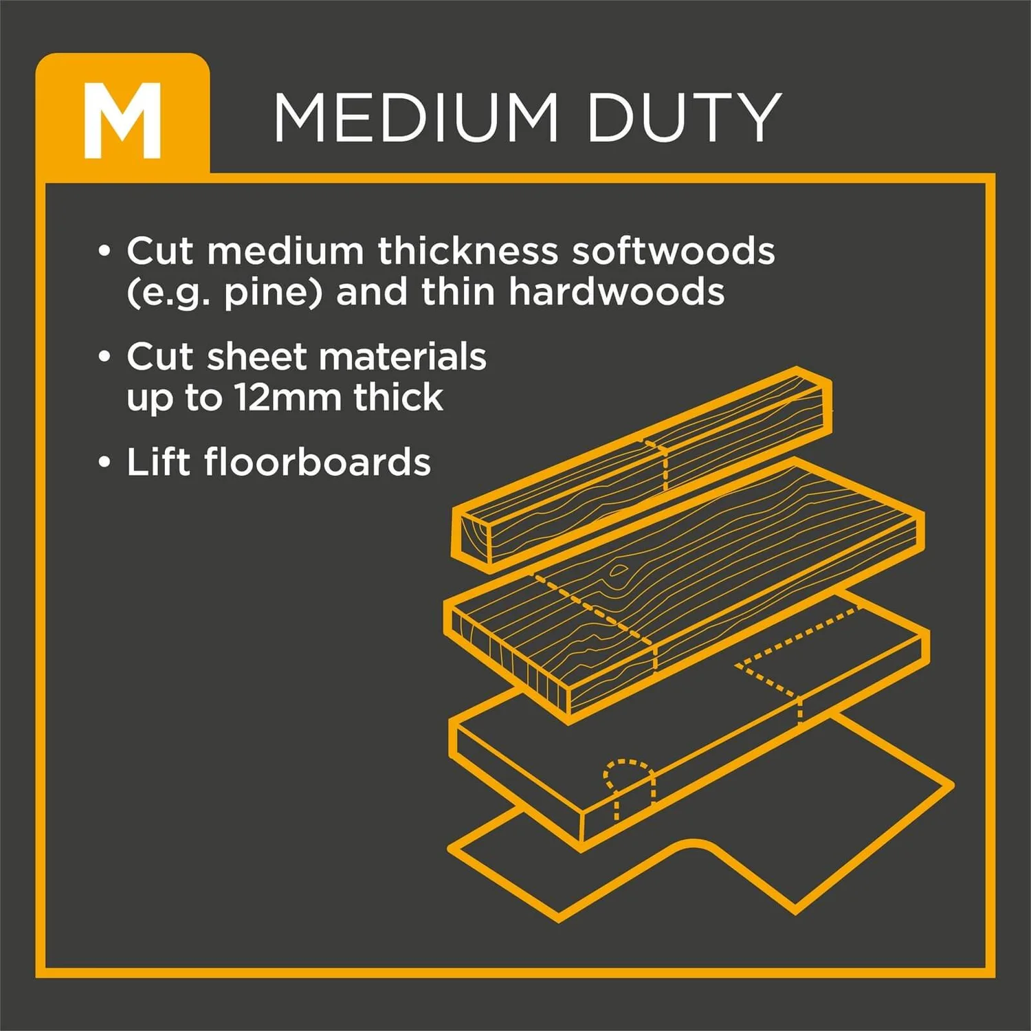 Ideal for cutting large sheet materials such as MDF, Plywood, OSB, chipboard, laminate, hard and softwood. Designed to be used on wood or plastic (depending on blade used).