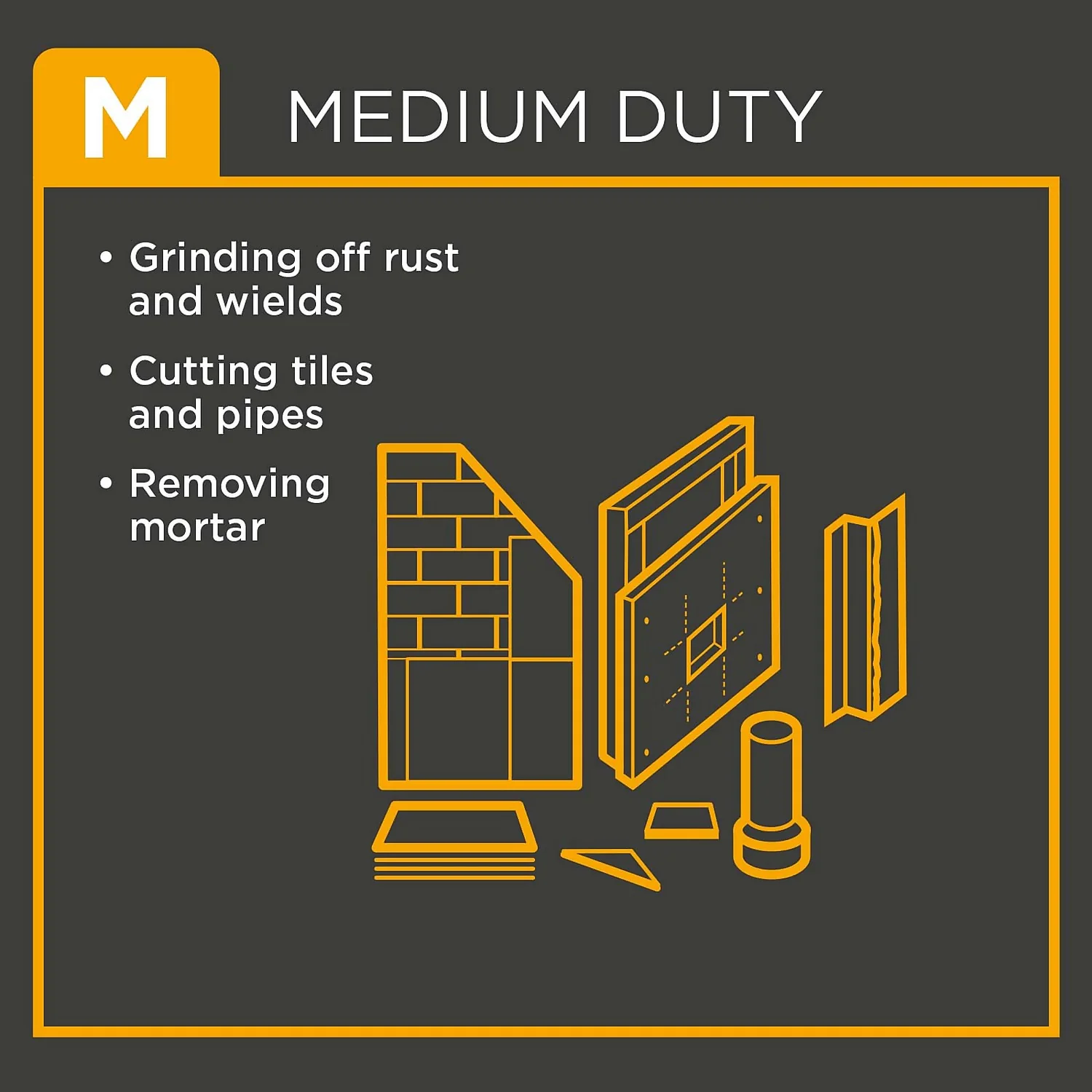 - 125mm Disc size is a good balance between depth of cut and accessibility