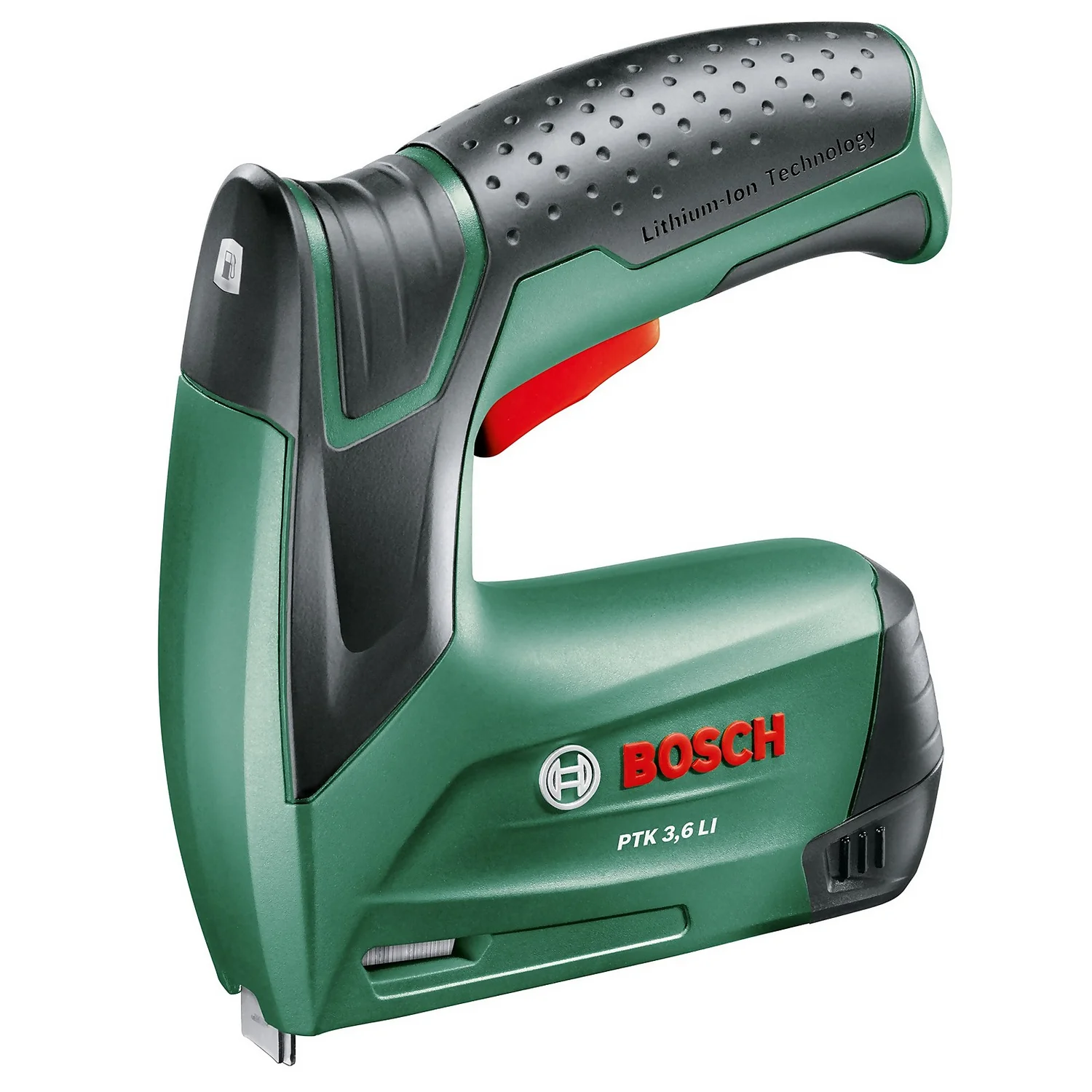 This lightweight, cordless tacker with lithium-ion technology is ideal for indoor and outdoor use. The charge level indicator prevents charging delays. The PTK 3,6 LI’s Push + Release system allows for controlled work by simply pushing the tacking nose onto the workpiece and pressing the switch, eliminating the risk of self-triggering. See when the staples need to be refilled with the convenient fill level indicator. The PTK 3,6 LI includes an integrated 3.6 V lithium-ion battery and is ideal for attaching a range of materials including fabrics, cardboard and paperboard onto softwood surfaces.
