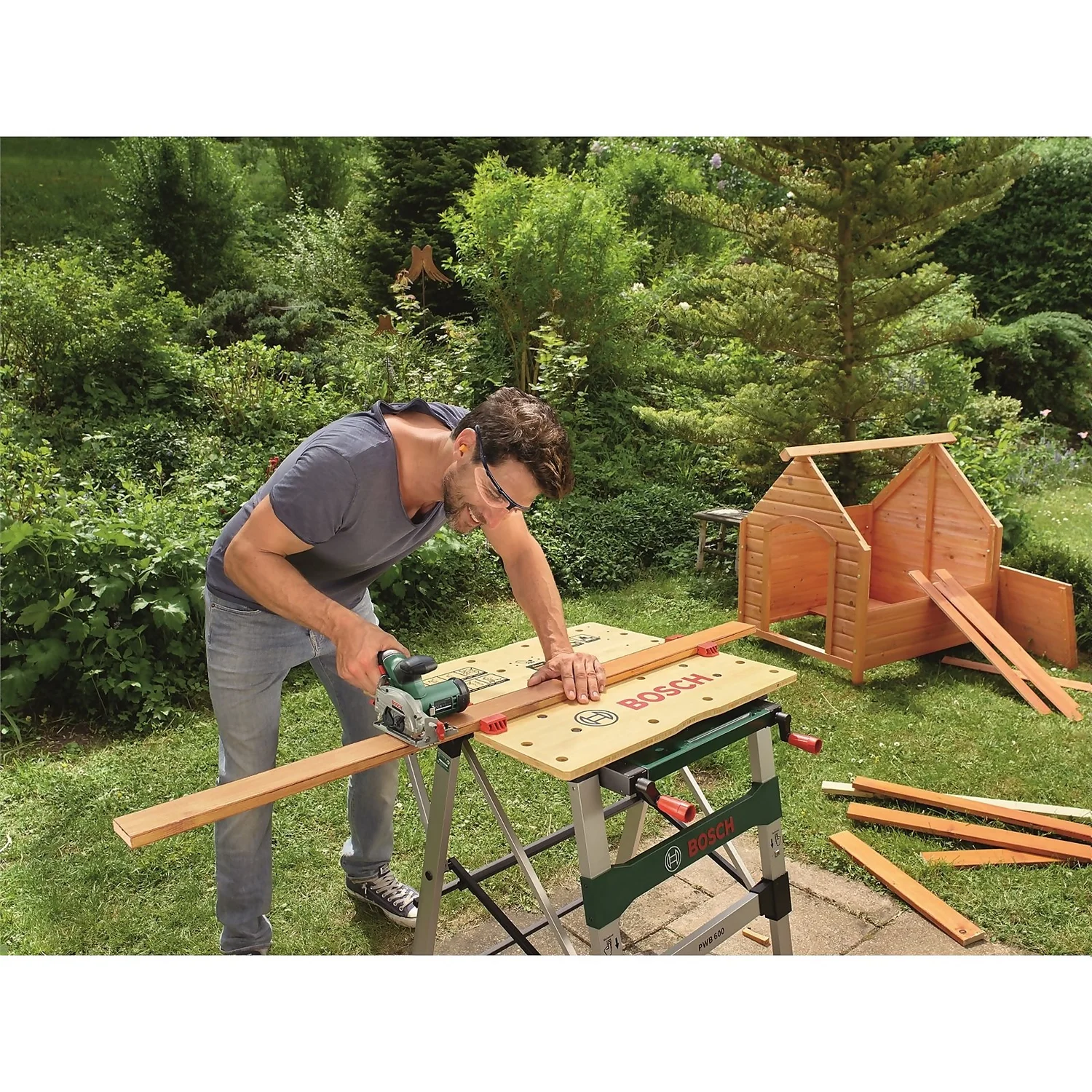 The Bosch UniversalCirc 12 Cordless Circular Saw is very comfortable and easy to use due to its ability to quickly adjust the cutting depth and the mitre angle when carrying out DIY tasks. This tool also features the patented Bosch Syneon Chip technology. The intelligent electronics detects the difficulty of the job and delivers the exact power needed, which means longer run time and a boosted battery life. Equipped with a PowerLight LED which provides a clear line of sight for precise and clean cuts. Expect a longer runtime with just one battery charge thanks to the Li-Ion technology. (Battery not included)