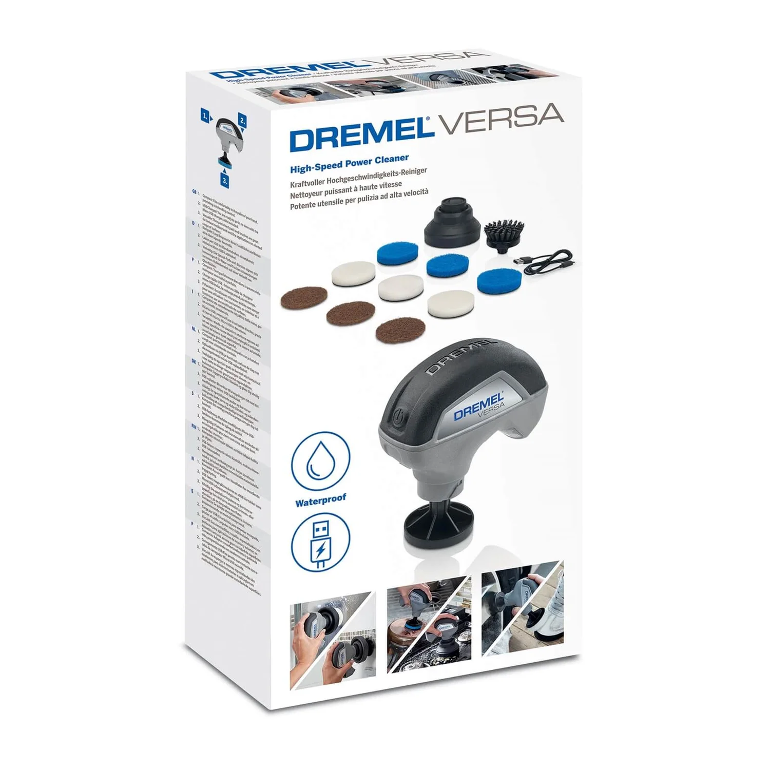 Save time with all your difficult cleaning jobs. The Dremel Versa all-purpose cleaner is perfect for both wet and dry uses, functioning as an oven cleaner, bathroom tile or shower glass cleaner, shoe cleaner and much more. All in one cleaning tool. Whether you’re kitchen cleaning or car detailing, the lightweight and compact design allows you to get into those hard to reach places. Both indoor and outdoor. Thanks to the four quick change spin brush and cleaning pads, including a non-scratch pad and heavy duty pad, this multi-purpose cleaner can be used both on delicate surfaces and on surfaces that allow for more aggressive cleaning. Eliminate elbow grease and effortlessly power clean the toughest surfaces.