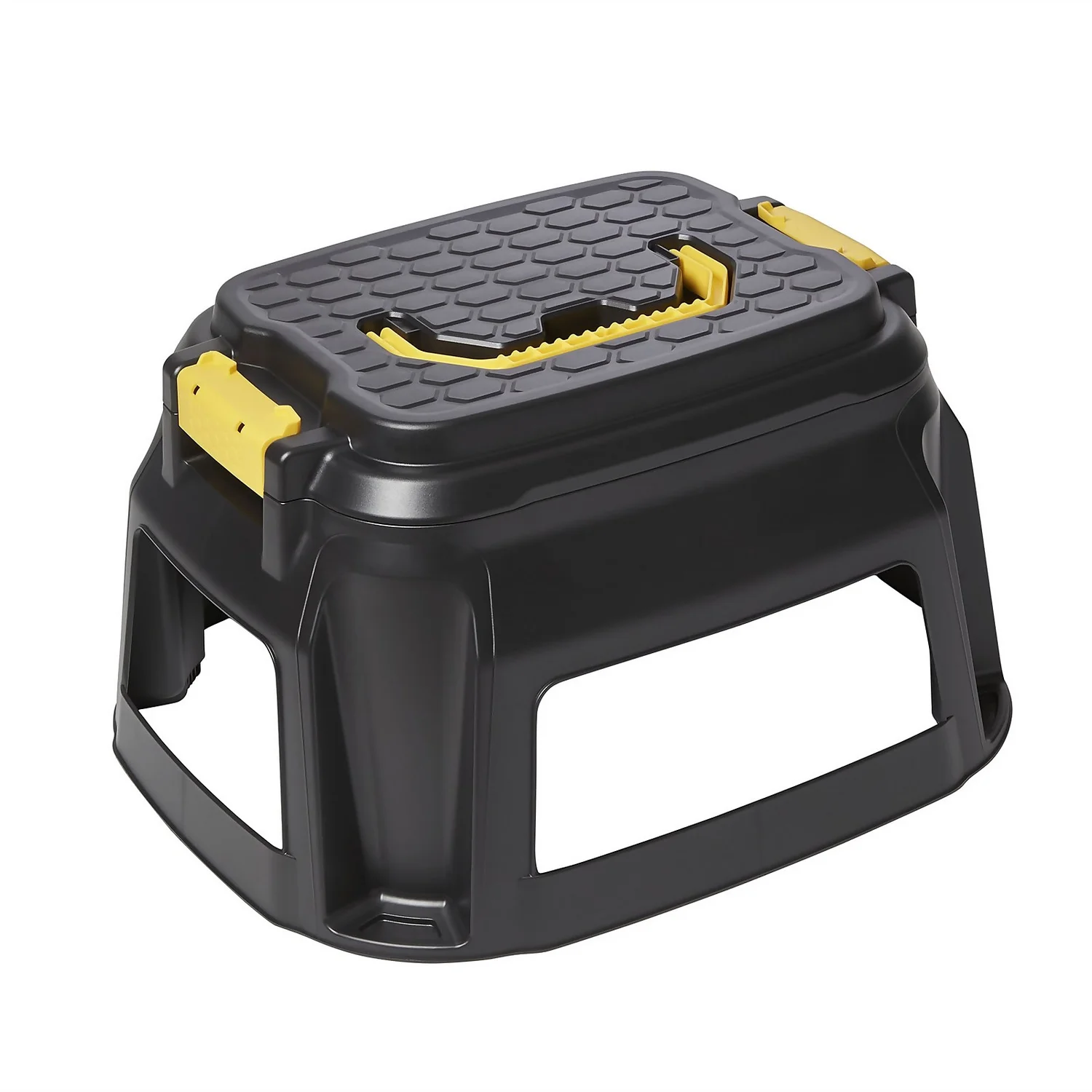 This heavy duty step stool has a removable tool caddy and carry handle.