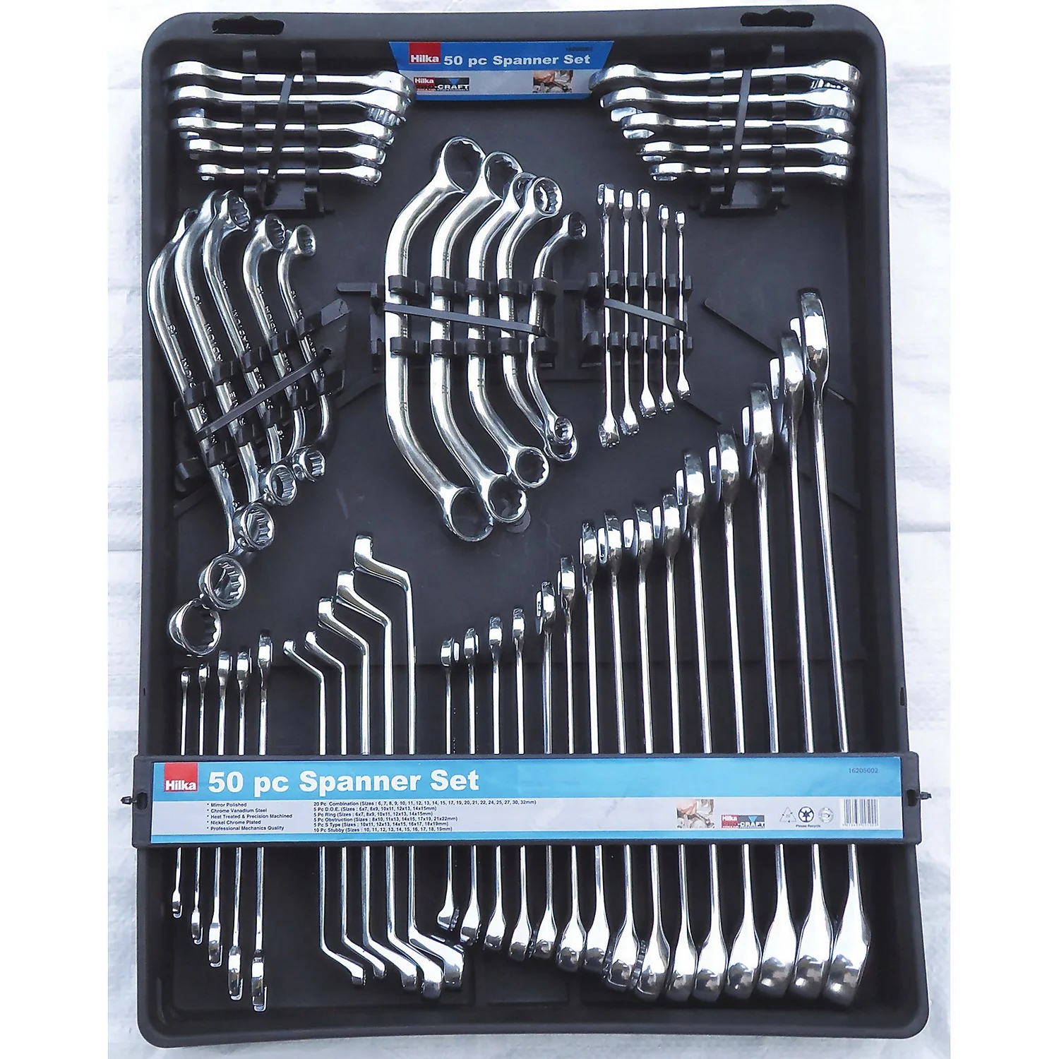 - Fully polished chrome vanadium steel spanners in storage pack.