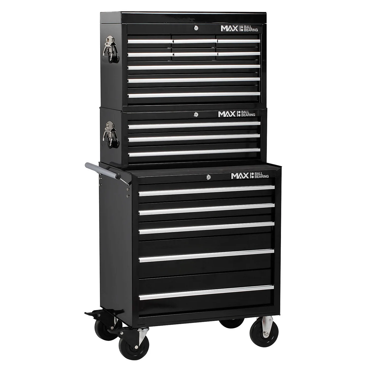 - Consists of a 9 drawer tool chest with 5 drawer rollaway cabinet and 3 drawer add on chest