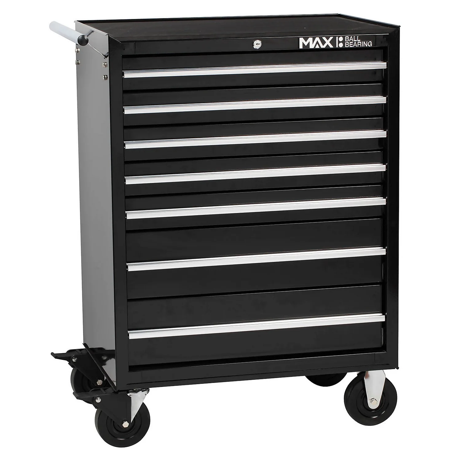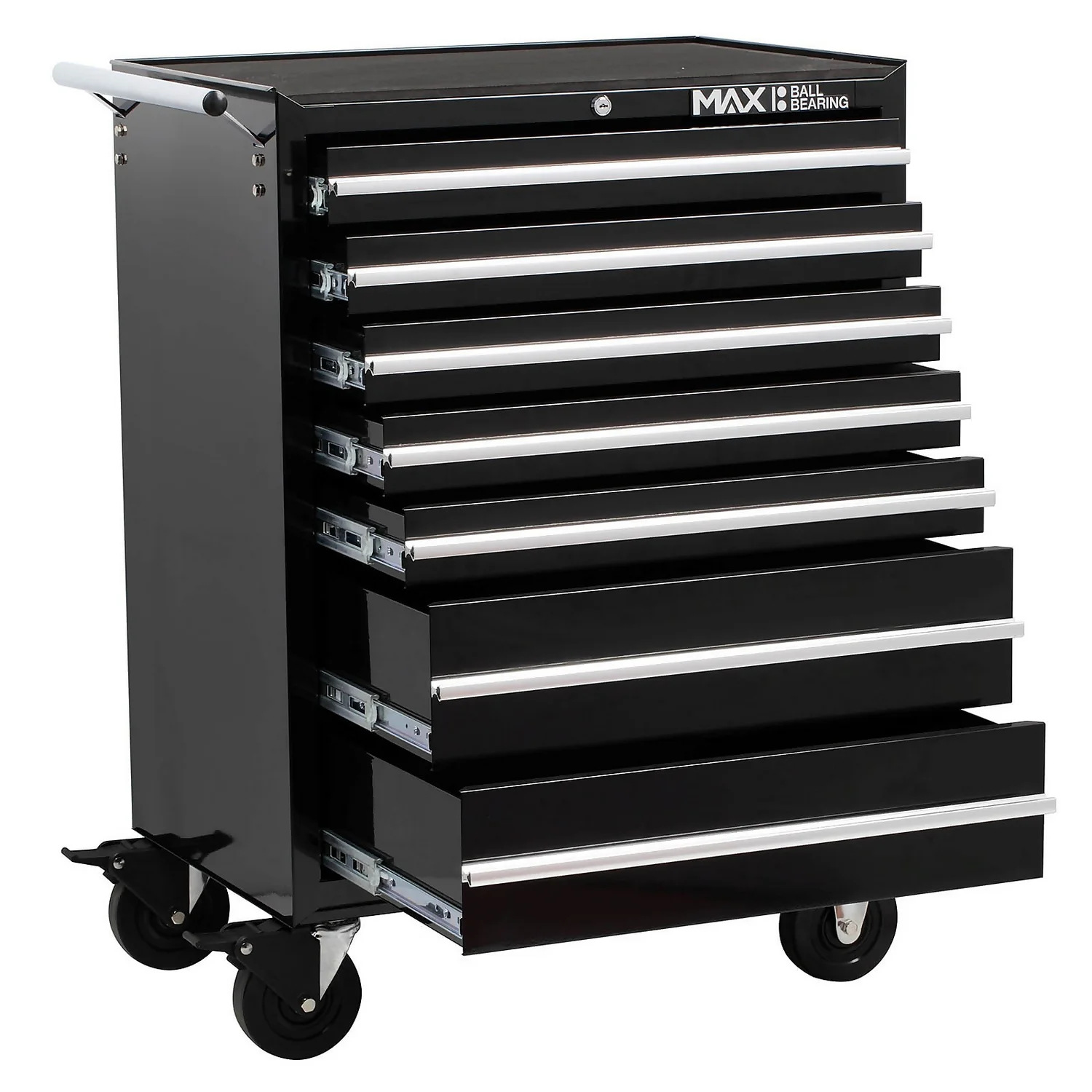 Extra-high, heavy duty all steel construction with ball bearing slides with positive stop. 5″ casters with reinforced cabinet base comes with protective top mat and drawer liners. Keyed locking mechanism full length aluminium drawer pulls, chrome side handles and lockable casters.