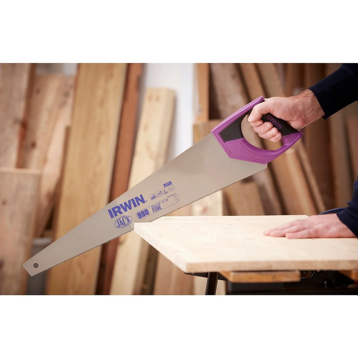 Ideal for being used for jobs in the workshop, house and garden. Can be used for fine finish cutting on hard and soft woods. The IRWIN Jack PLUS 990 Fine Handsaw 20’’ 9 TPI provides best-in-class handsaws for today’s trade professional. With advanced tooth technology and an ergonomic ProTouch™ grip, the PLUS range handsaws are number one for speed and ease and quality of cut. Along with these industry-leading features, the full range utilises a system of colour coded handles for easy selection. The IRWIN hand saw has been designed to be versatile and lightweight, making it an essential tool in any DIYer’s toolbox.