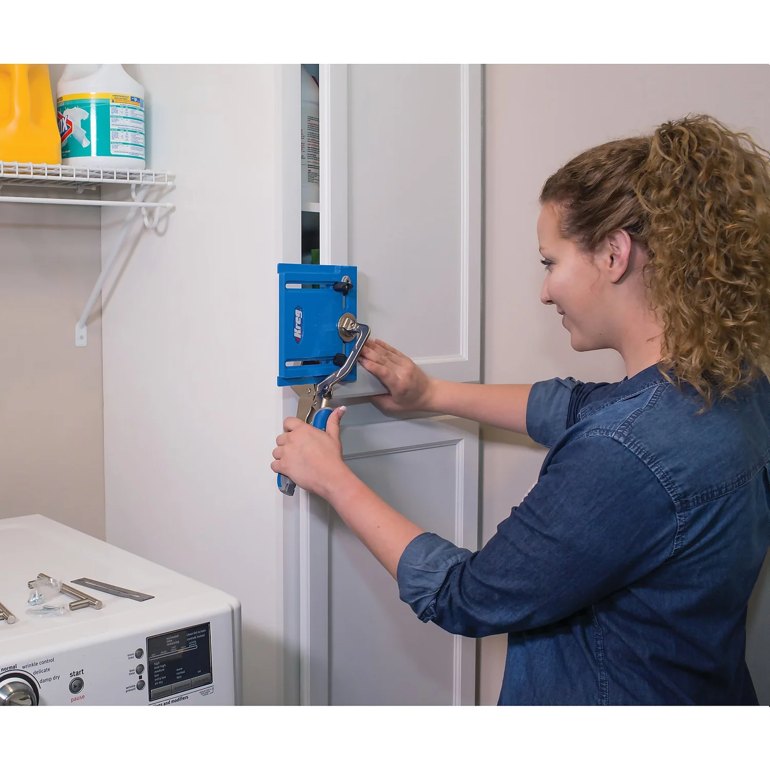 Install knobs and pulls with easy, repeatable accuracy. The Kreg Cabinet Hardware Jig takes the guesswork out of installing cabinet knobs and pulls. The moveable edge guide and measuring scales make it easy to position knobs precisely, while adjustable drill guides ensure straight holes for perfect knob and pull positioning every time. Perfect for new construction and for refreshing entire rooms. Whether you’re updating your cabinets or building a project from scratch, adding hardware like knobs and pulls is often one of the final steps and one of the most intimidating. Drill the holes incorrectly, and it can be very difficult to correct the mistake. The Cabinet Hardware Jig takes all the guesswork out of the process by allowing you to drill straight, accurately positioned holes every time, so you’ll know that every piece of hardware is positioned correctly and consistently. The Cabinet Hardware Jig features moveable, hardened-steel drill guides that lock in place to align with common hole-spacing measurements for cabinet knobs and pulls. This allows you to confidently drill straight, accurately positioned holes. A moveable edge guide and built-in measuring scales (in imperial and metric) ensure that those holes will be positioned where you want it every time, which means you can drill as many holes as you need without the uncertainty and potential mistakes that can come with measuring and marking every one. The Cabinet Hardware Jig is designed to be intuitive for beginners to use, but robust enough for professionals. All you need is a drill and a 5mm (3/16″), bit, and the ability to set the jig to match your hardware and the position where you want it to go. Durable polymer construction makes the jig tough but light, and hardened-steel drill guides ensure that youll get straight, accurate holes whether youre drilling one, a few, or hundreds. NOTE: 5mm (3/16″) 5mm drill bit required is not included.