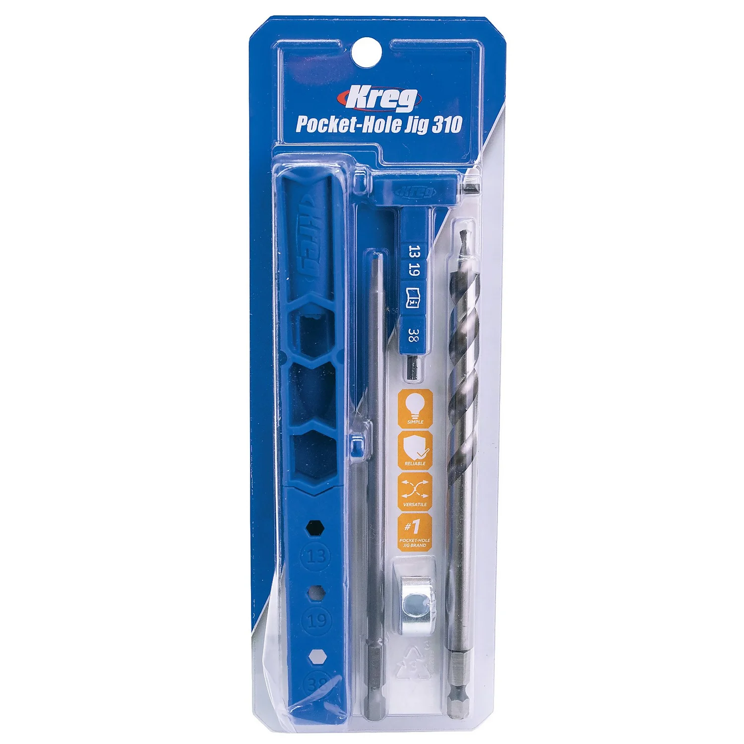 The Kreg Pocket-Hole Jig 310 makes it easier than ever to build wood projects whether youre building your first DIY project, or you have been working with wood for years. The Pocket-Hole Jig 310 works with materials of any thickness between 13mm-38mm (1/2″-1-1/2″). It features a hardened-steel drill guide and thickness stops for 13mm, 19mm, and 38mm (1/2″, 3/4″, and 1-1/2″) material that give the versatility you need to build with boards and plywood. The included material thickness gauge and easy-set drill bit make setup simple, and the anti-slip base holds the jig precisely in position while you drill perfectly positioned pocket holes every time. Durable construction and a lifetime drill-guide warranty ensure that the Kreg Pocket-Hole Jig 310 will deliver the years of project-building and home-repair satisfaction and value you expect from the No.1 pocket-hole brand Kreg.