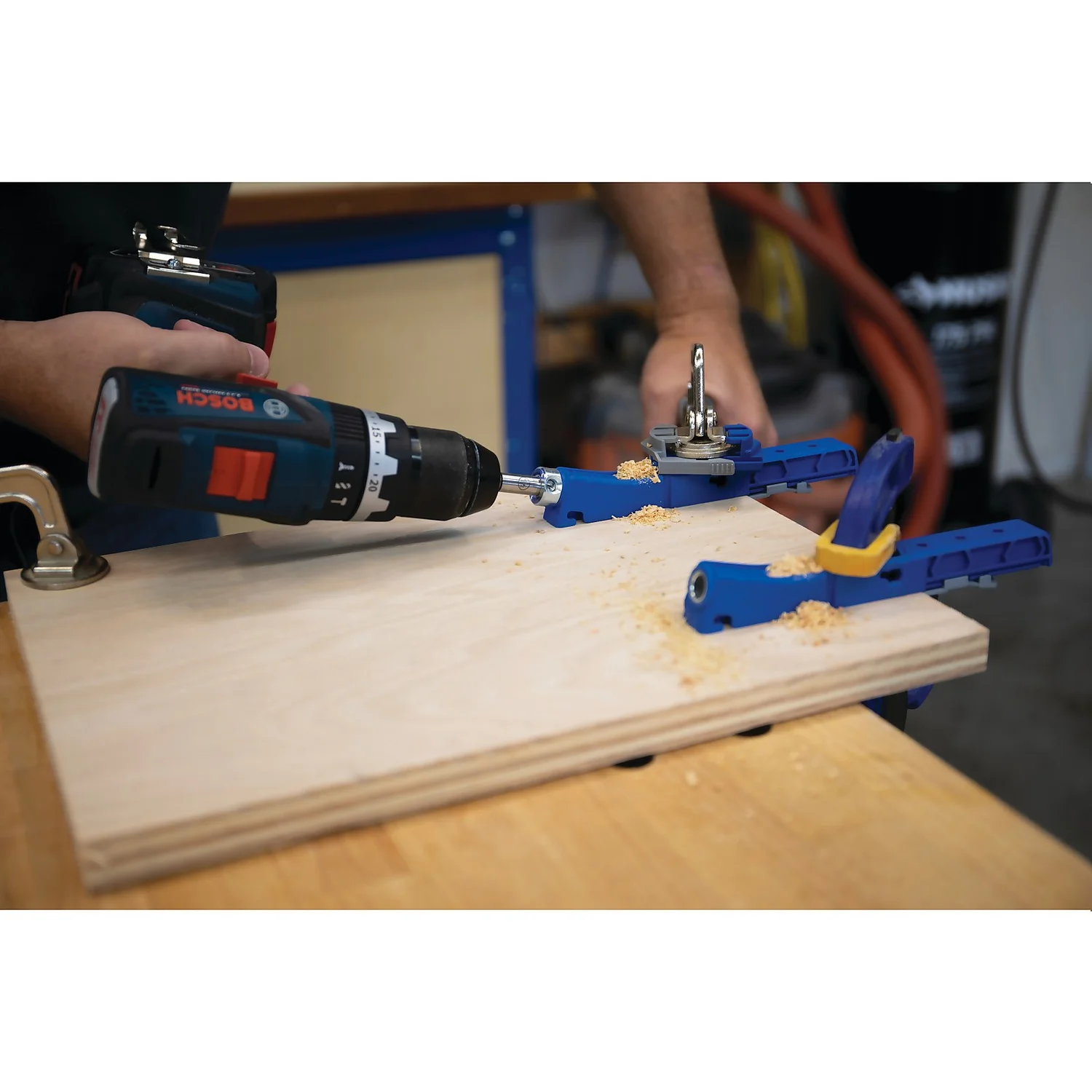 | Product Contains | (2) Drill Guides with Material Thickness Stops, (1) Drill Guide Spacer, (1) Easy-Set Drill Bit and Stop Collar, (1) Material Thickness Gauge/Hex Wrench, (1) 6" Square-Drive Bit, (1) Carrying Case, (40) Sample Screws, Owner's Manual |
