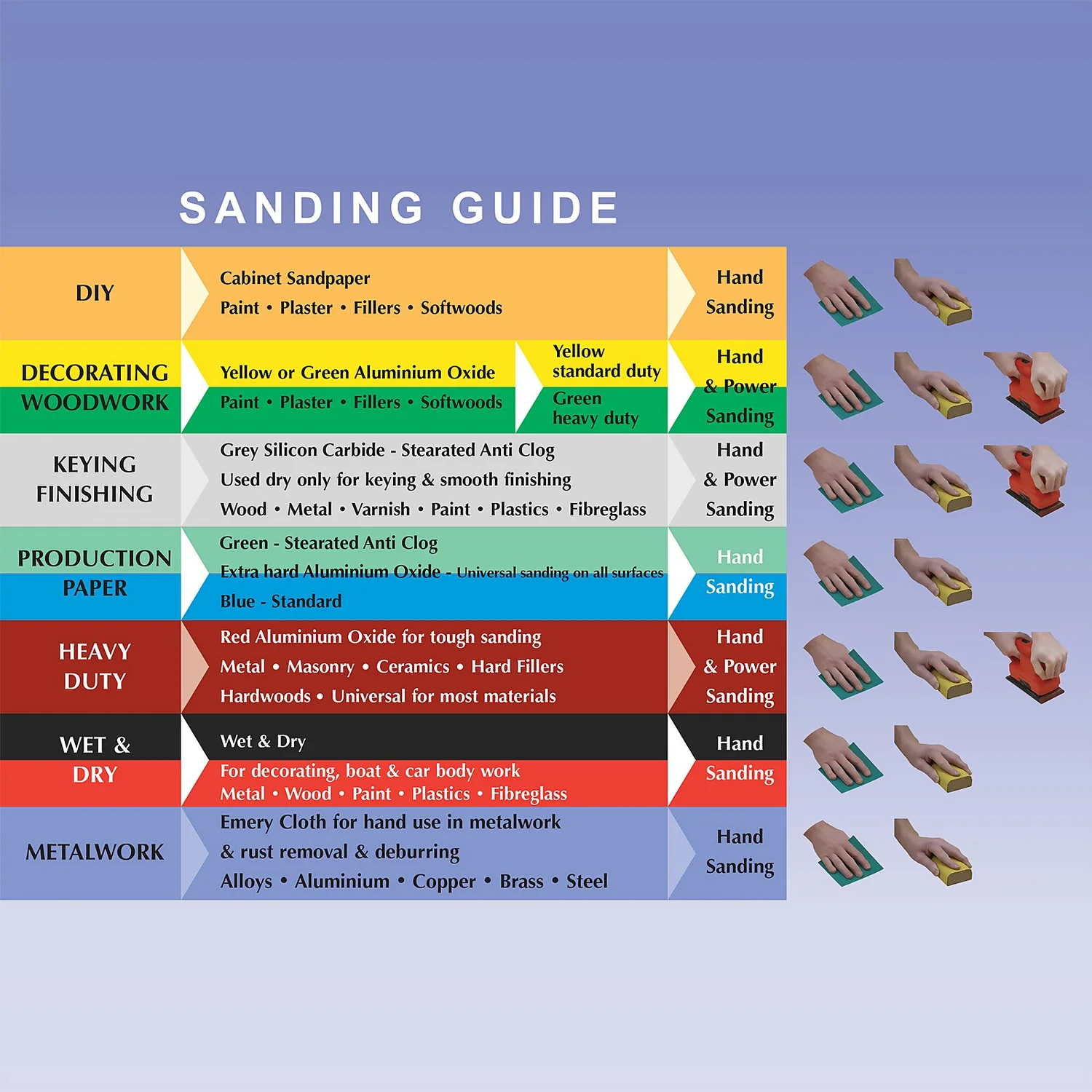 - Ideal for hand sanding
