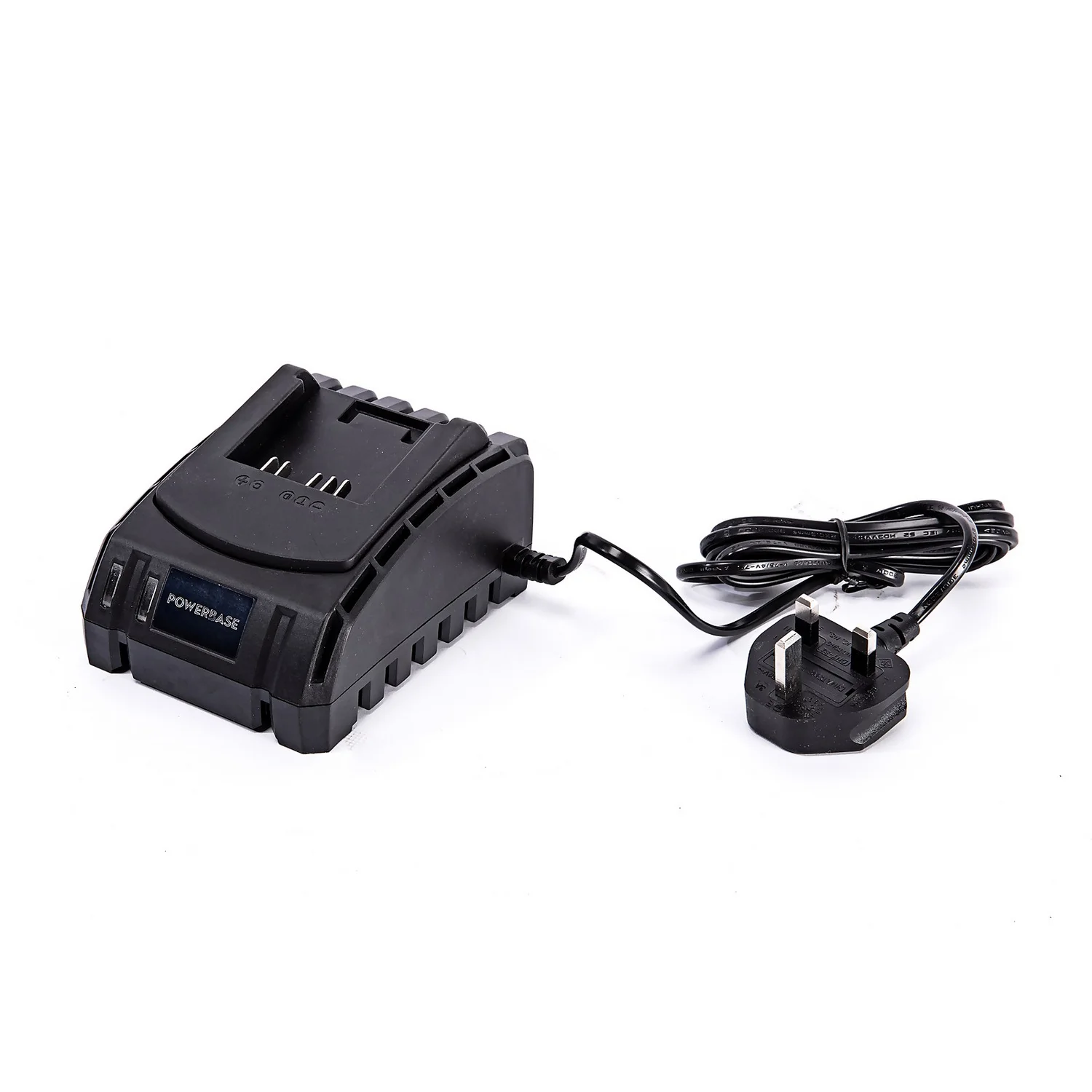 This single charger will provide a fast charge to a Powerbase branded battery. The charger has LED lights showing the charging status of the battery.