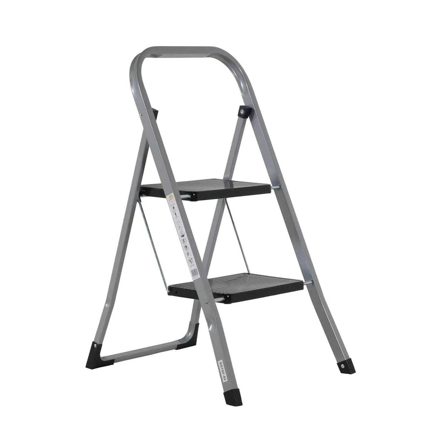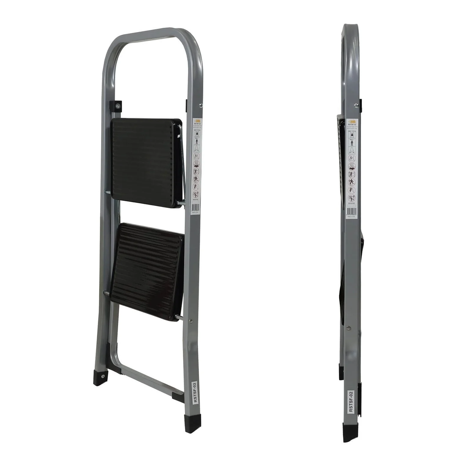 The Rhino 2 tread step stool with a top tread height of 0.47m, this grey steel-framed step stool is a convenient and practical way to accessing those just out of reach heights in the home and garden. This 2 tread step stool features slip-resistant feet and treads for added stability and folds flat for easy storage.