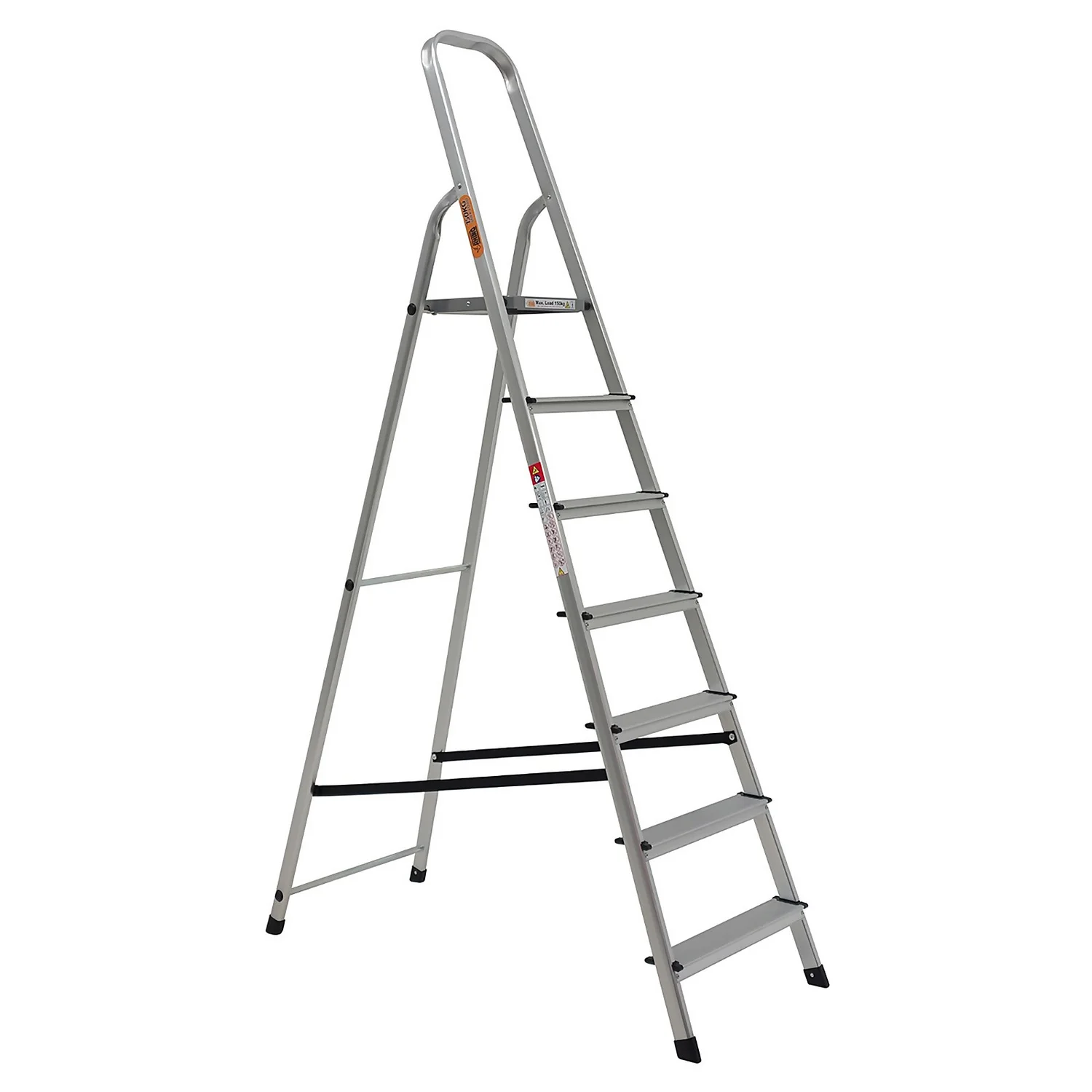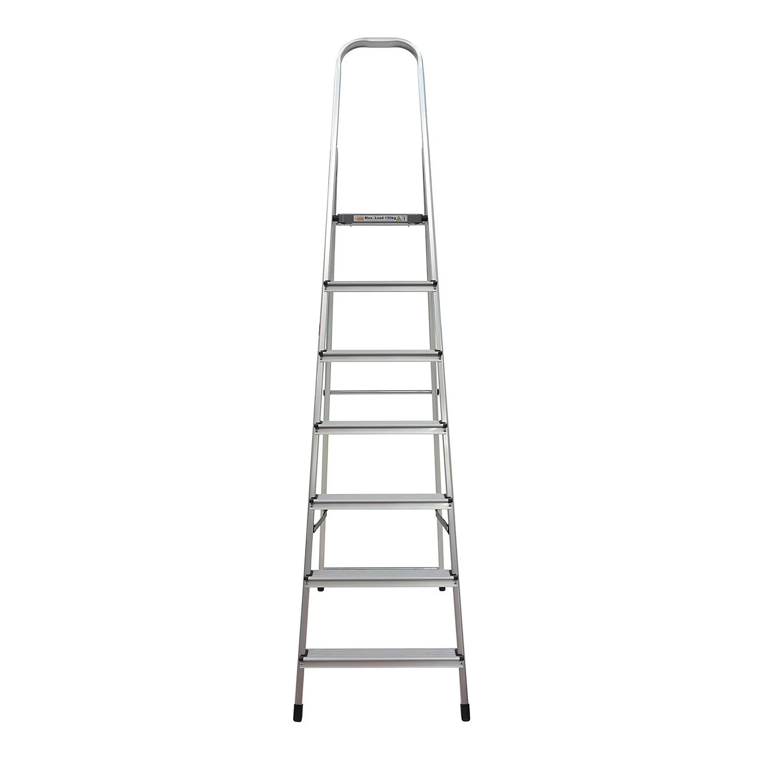 The Rhino 7 tread lightweight aluminium Step Ladder has an extra-large platform with slip-resistant treads and a high hand rail to provide a secure, stable and comfortable work area. With a platform height of 1.48m, a reach height of 3.23m* and a load rating of 150kg**, this makes it a convenient and portable aid for all Domestic and Trade jobs. The ladder also features large slip-resistant feet to stop the ladder from sliding.