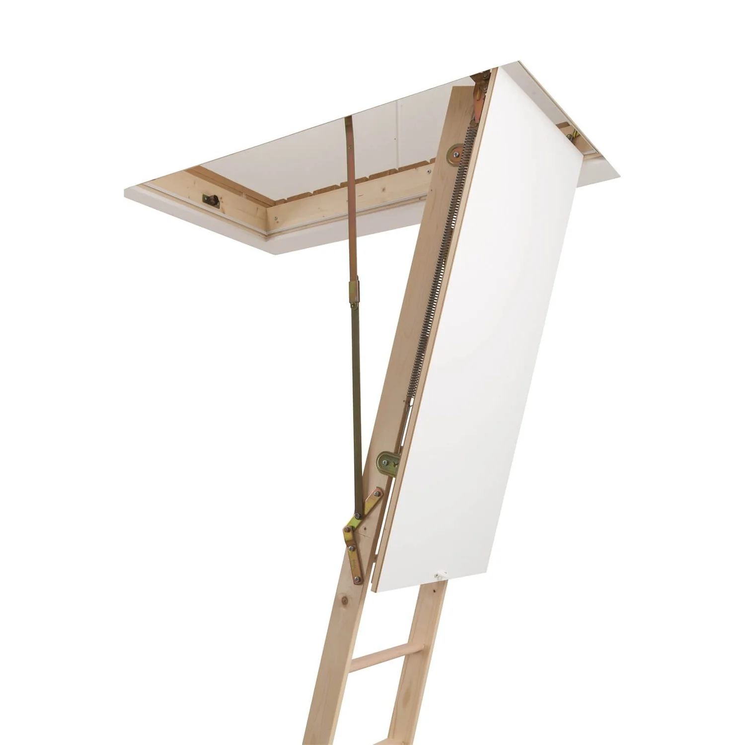 The Rhino Timber Loft Ladder is a sturdy and perfect loft access solution for DIY installation. This folding loft ladder stores within the trapdoor so no loft floor space in the loft is used. The ladder also has slip-resistant treads for comfortable climbing. Comes complete with fully insulated trapdoor, loft surround and all fittings. Suitable for heights up to 2.8m.
