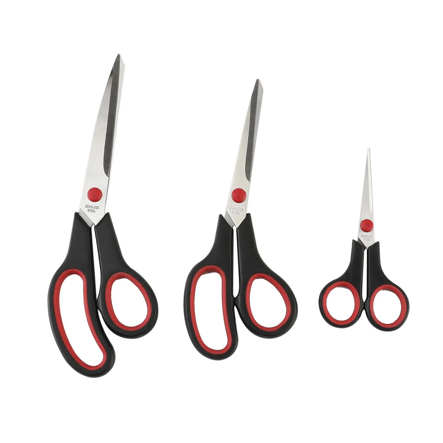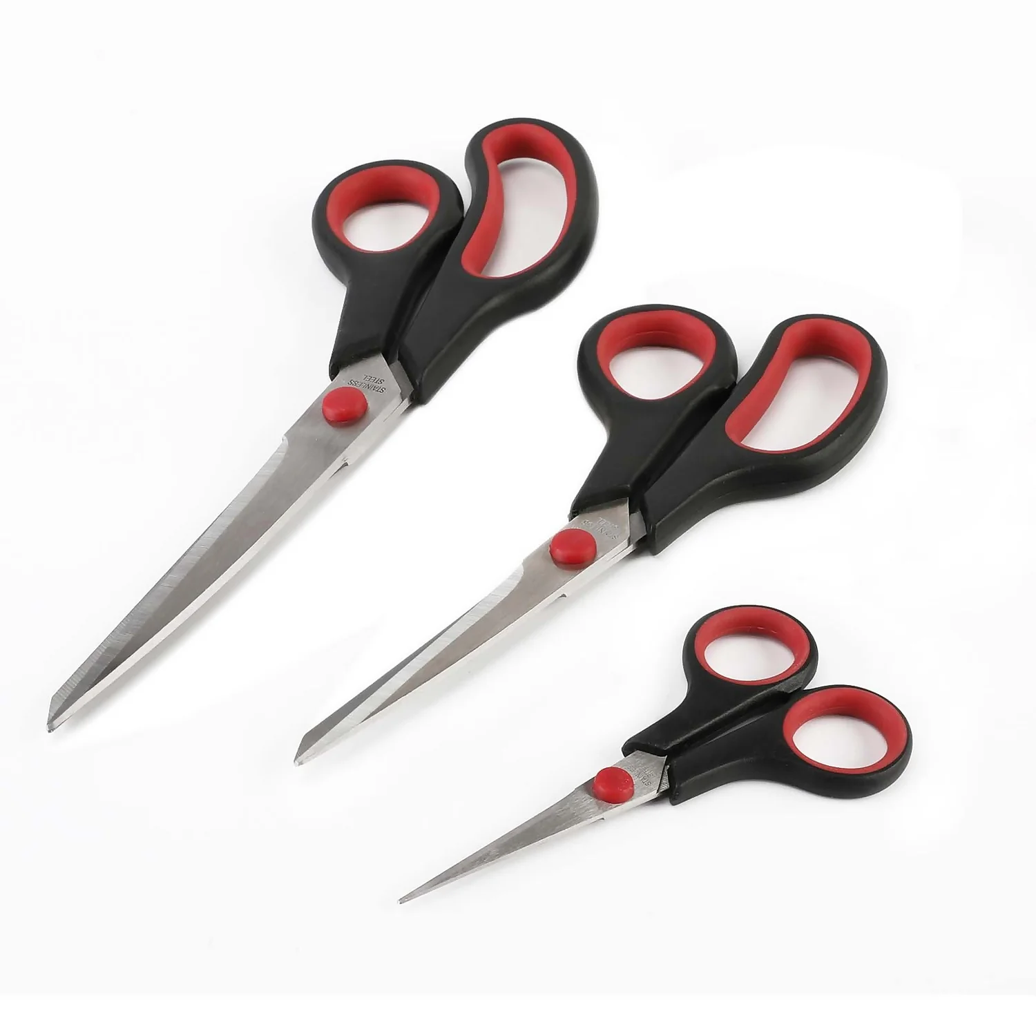 This 3 pack of Scissors are made from Stainless steel, have Soft grip handles and have 3 different sizes to suit all your household needs: 1 x 140mm, 1 x 215mm, 1 x 245mm