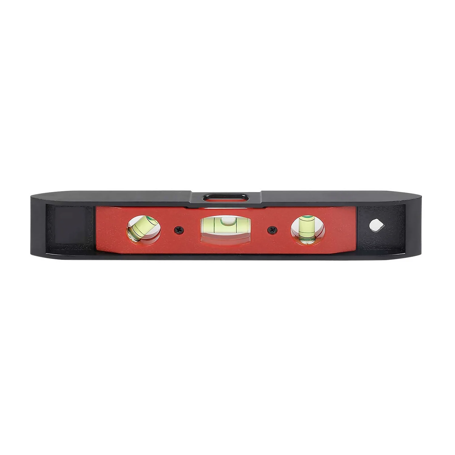 This sovereign magnetic spirit level is small and portable enough to fit in your tool kit. The 2 vials (45 & 90 degrees) have an accuracy of 0.2mm per metre providing exact measurement in horizontal or vertical inclinations and being magnetic, it will free both your hands in some situations. Its an invaluable tool for all types of levelling jobs from hanging a picture to carpentry or outdoor tasks.