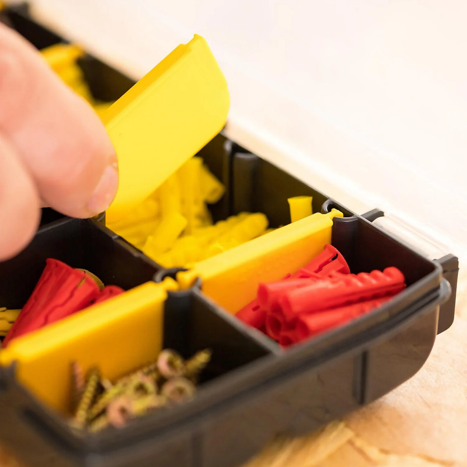 The STANLEY organiser has been designed for DIY-ers and anyone that would require customised storage around the home. Comes with 10 compartment Organiser.