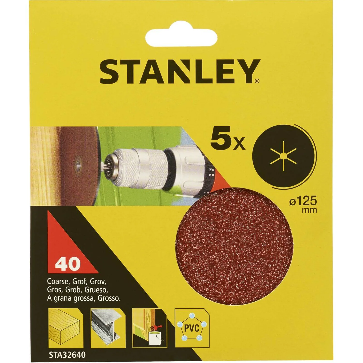 Stanley 125mm 40 grit sanding discs – pack of 5.