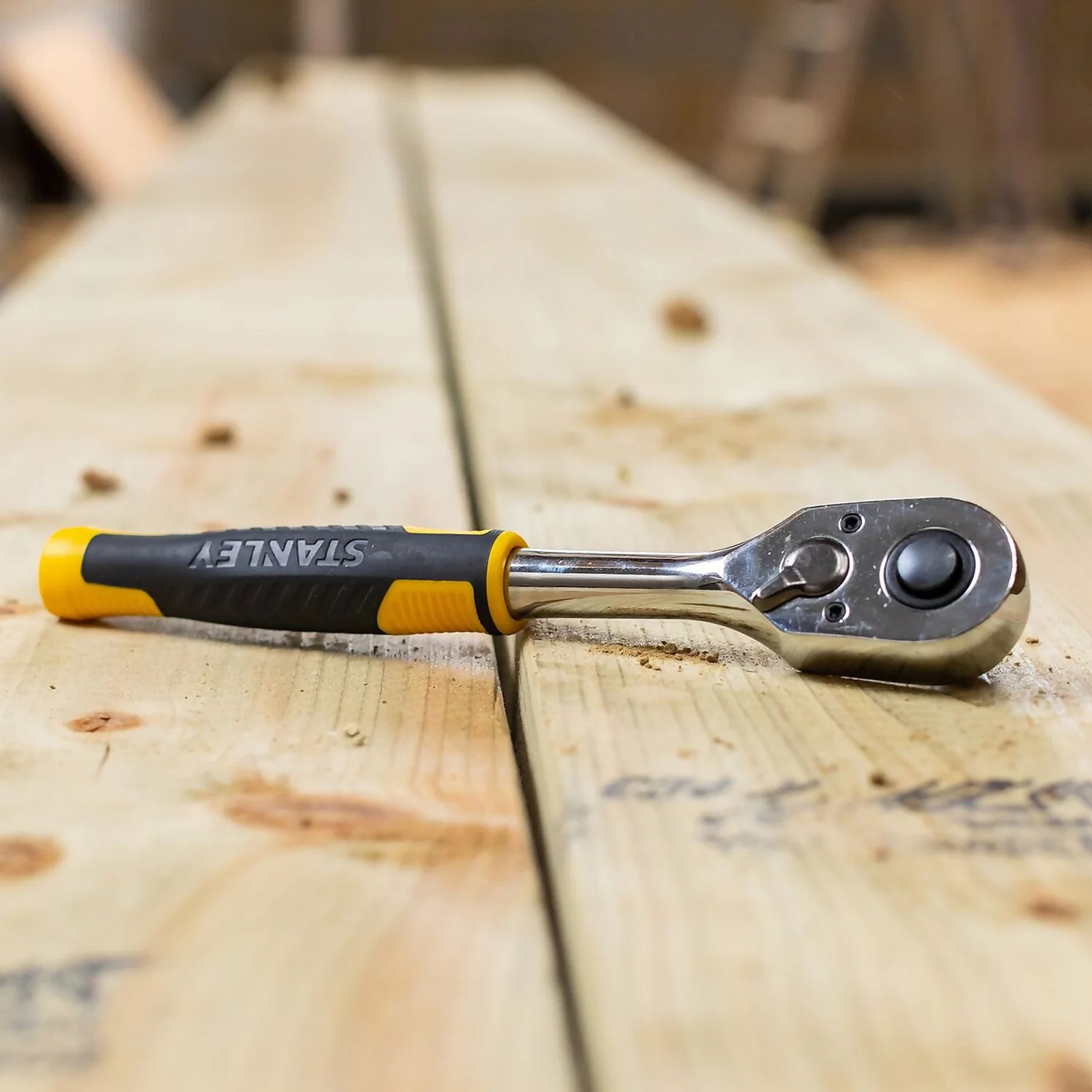 The STANLEY Compact 3/8″ 72 Tooth Ratchet is made with fine 72-teeth that allows for 5° increments, ensuring tightening capacity and accuracy within narrow spaces. It comes with a large, flush quick release button for easy socket removal. This versatile set has been designed for efficiency and productivity. Comfort is guaranteed thanks to the bi-material handle, which provides good grip preventing accidental switching and allows for easy, one-handed operation.