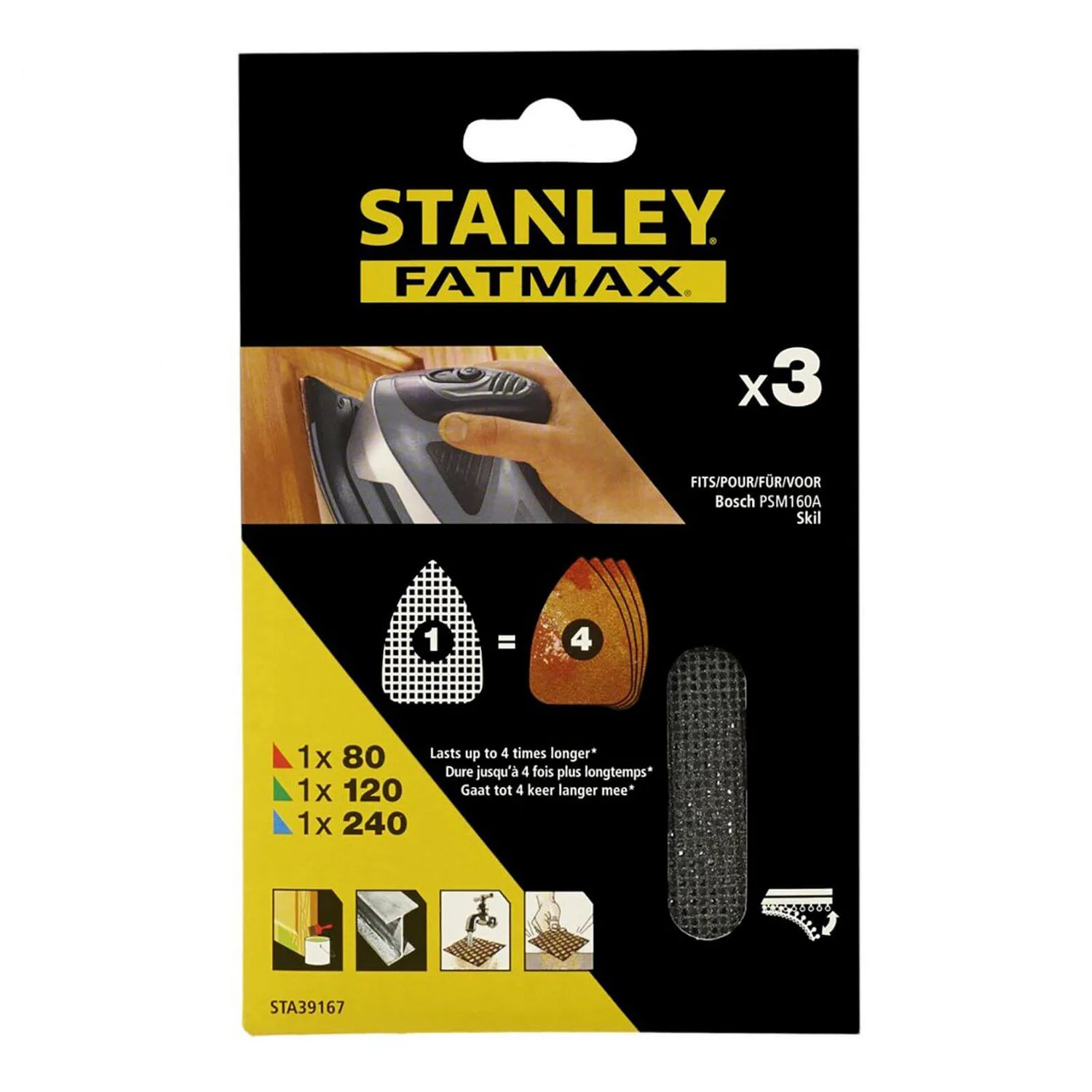 STANLEY FATMAX mixed pack of bosch detail sanding cloth with hook and loop for quick fitment.