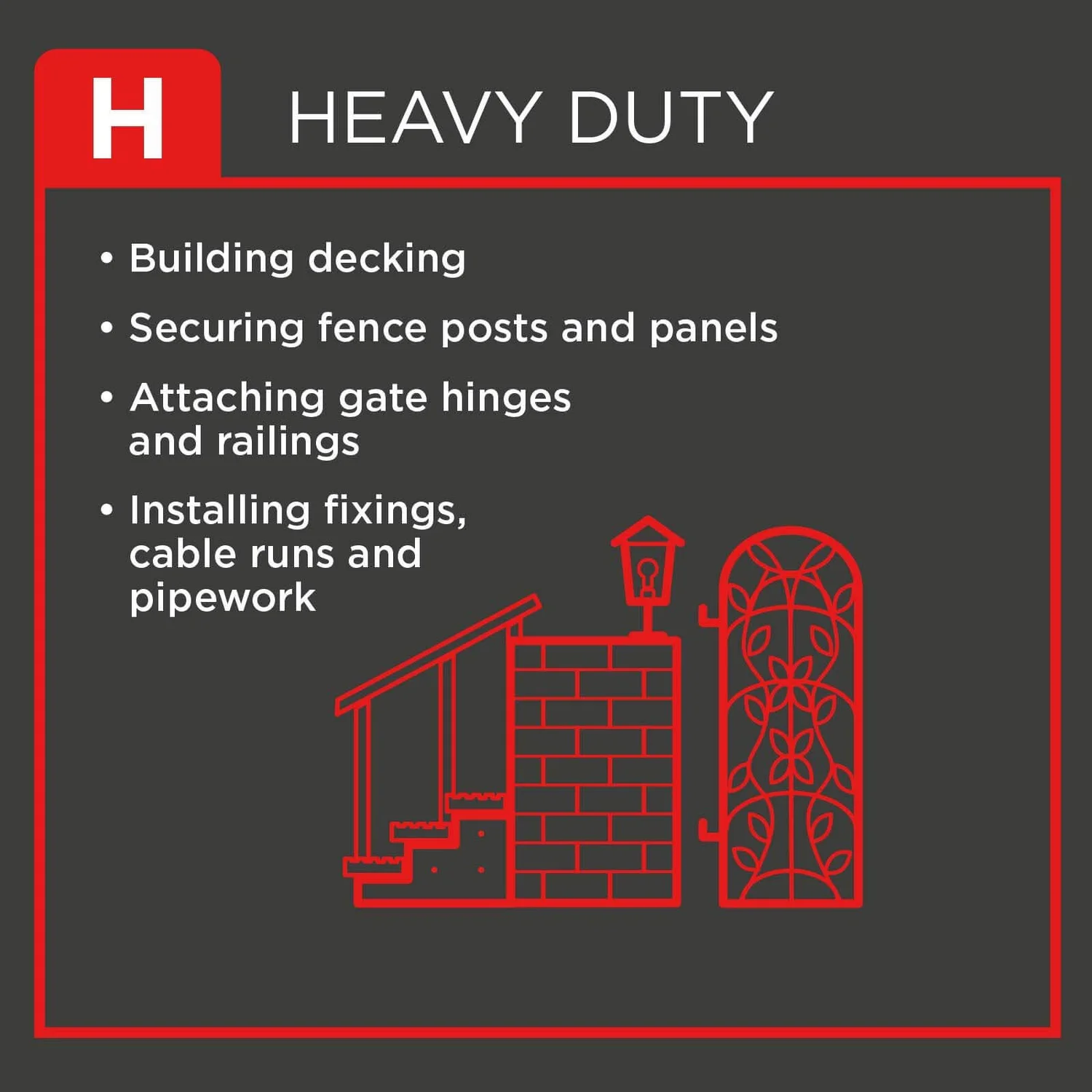 - Hammer action provides up to 25,500 BPM for efficient tougher drilling into masonry