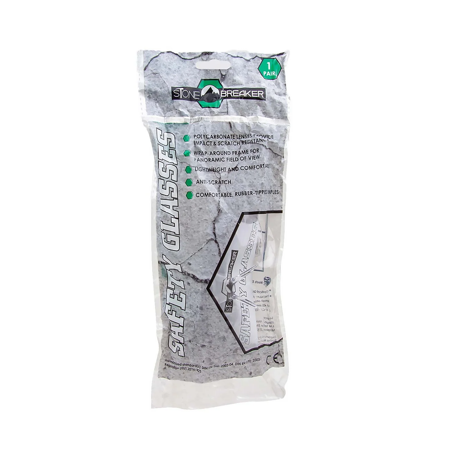 The StoneBreaker clear lens safety glasses, feature polycarbonate lenses which provide an impact and scratch resistance surface for safety. The lenses are designed to wrap around your face for a panoramic view. Lightweight and comfortable, the rubber tipped temples allow all day use.
