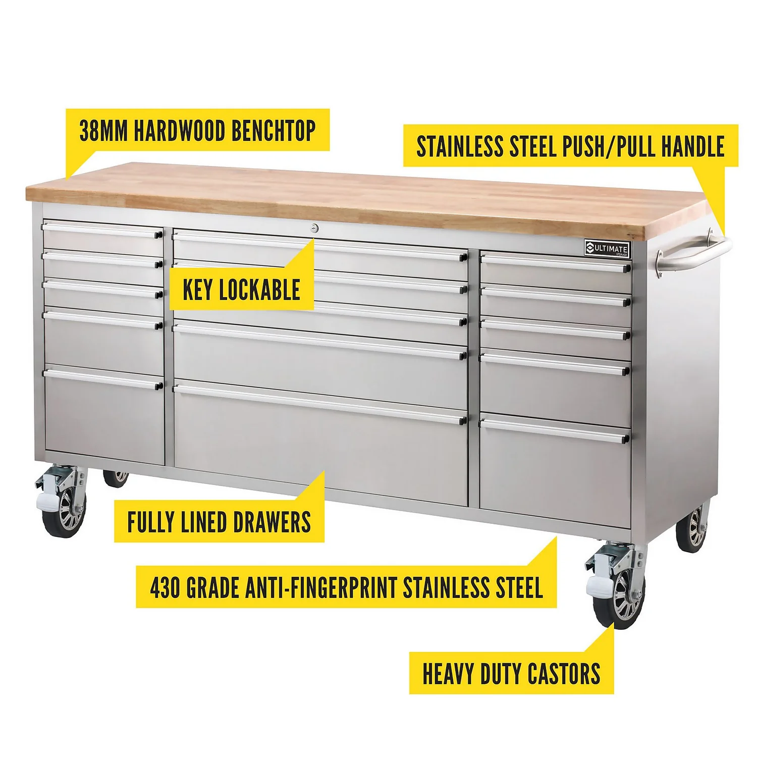 The Ultimate Storage tool trolley is a necessity in the tool shed and work place, with 15 drawers providing ample space to organise and store tools, while the lock away system keeps belongings safe and secure.